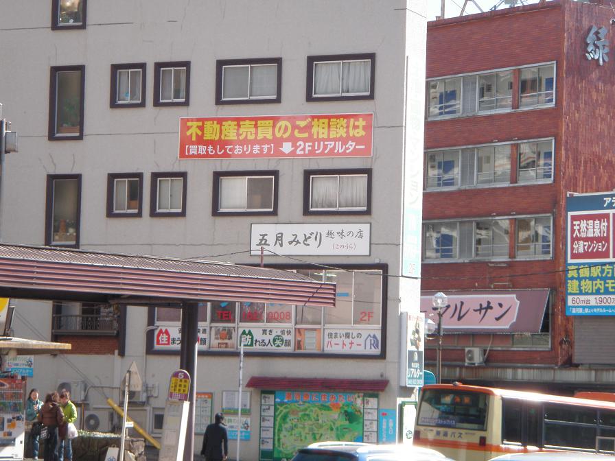 五月みどり 趣味の店 なんのこっちゃ、と駅を少し出て見上げますと